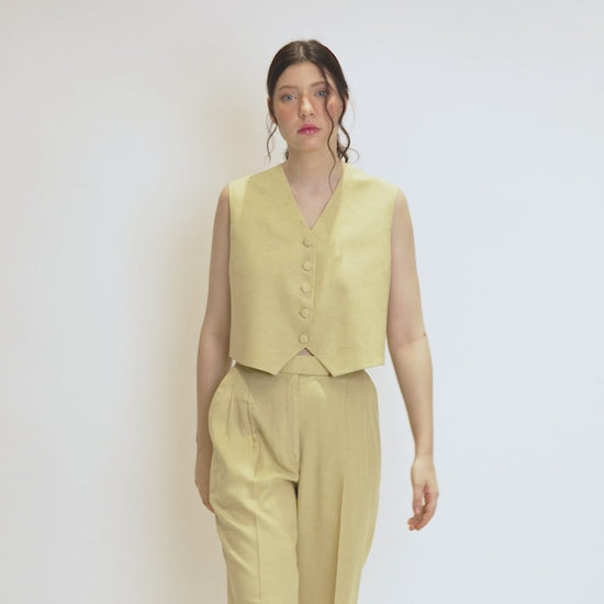 BEIGE GREEN LINEN WAISTCOAT WITH PANTS