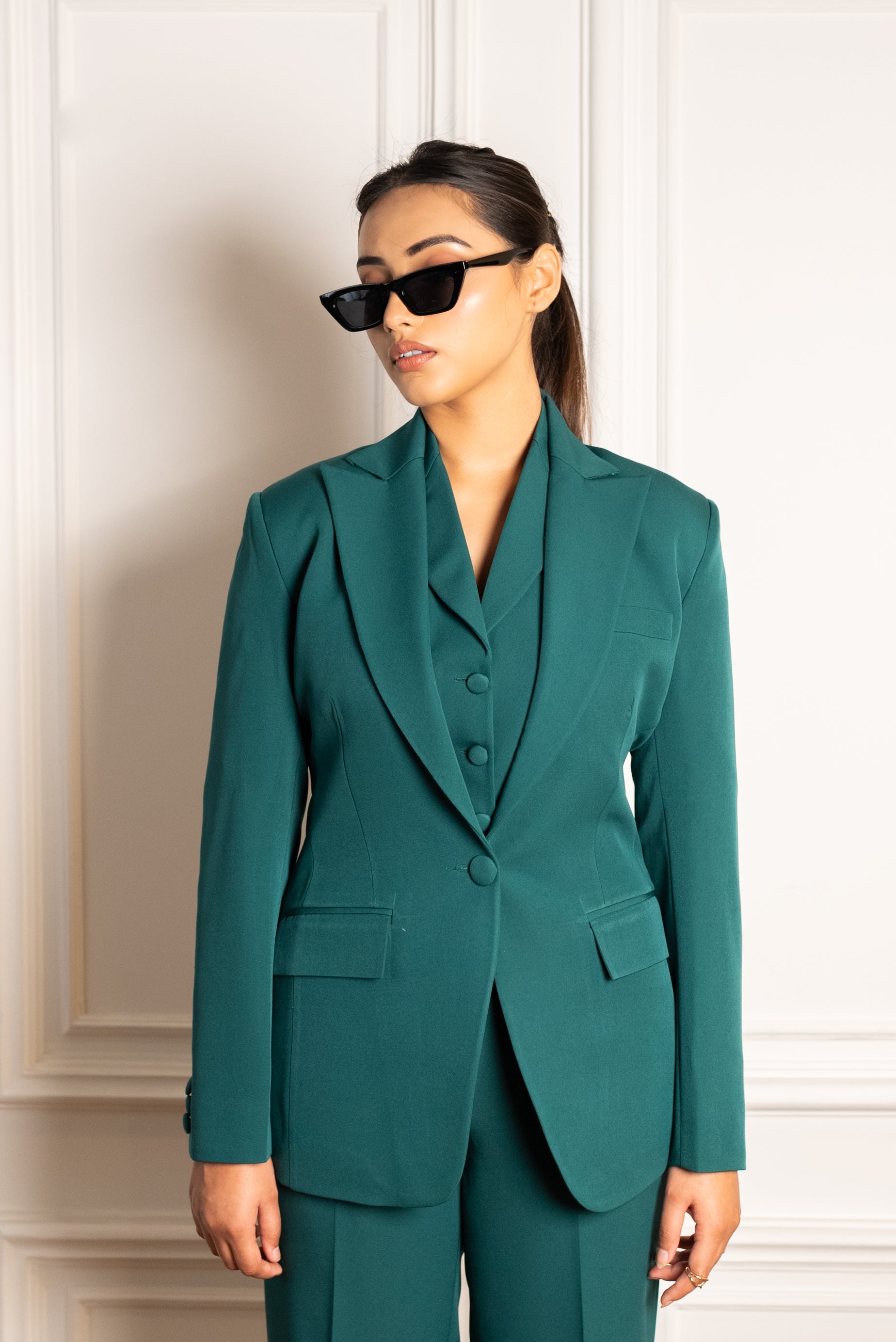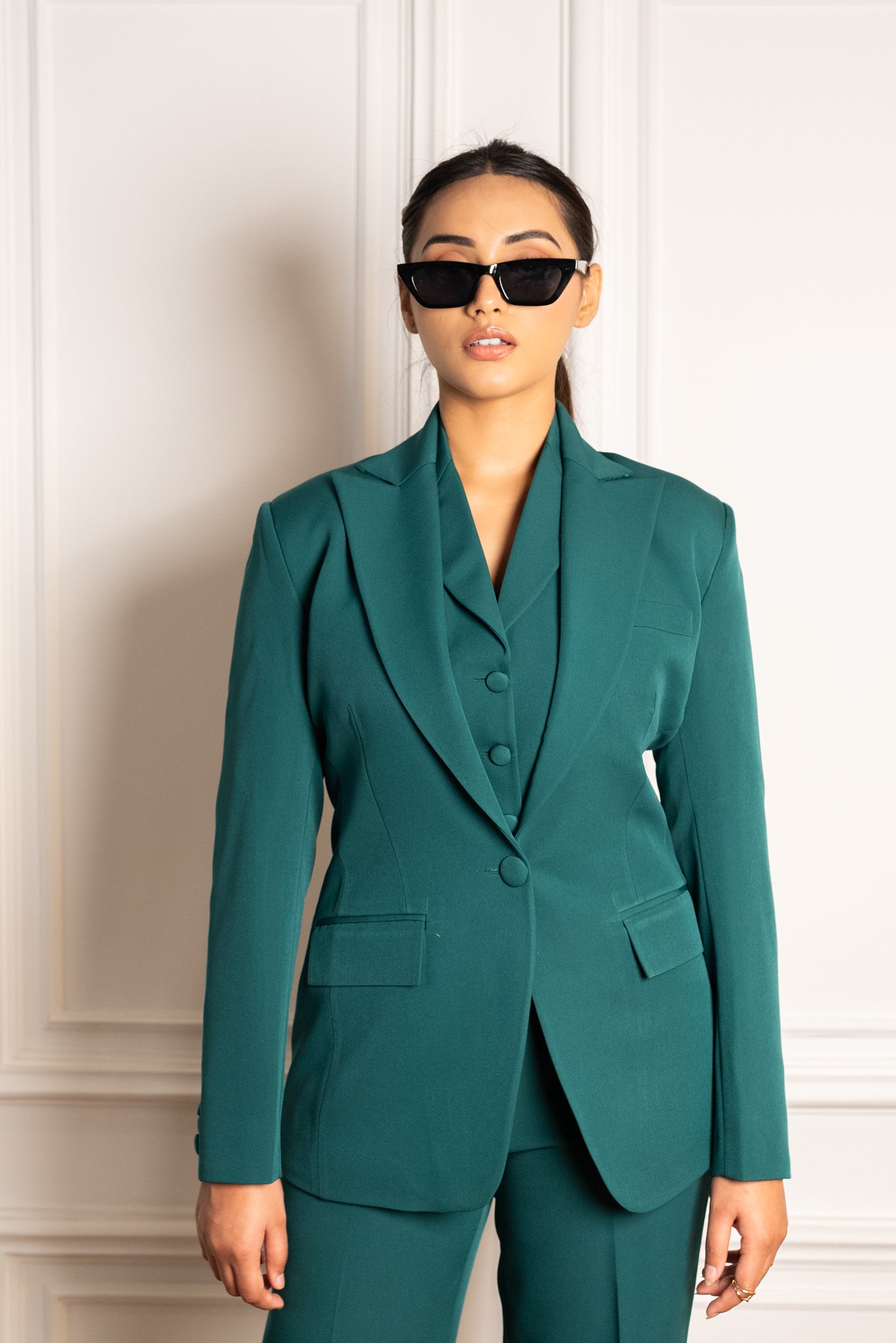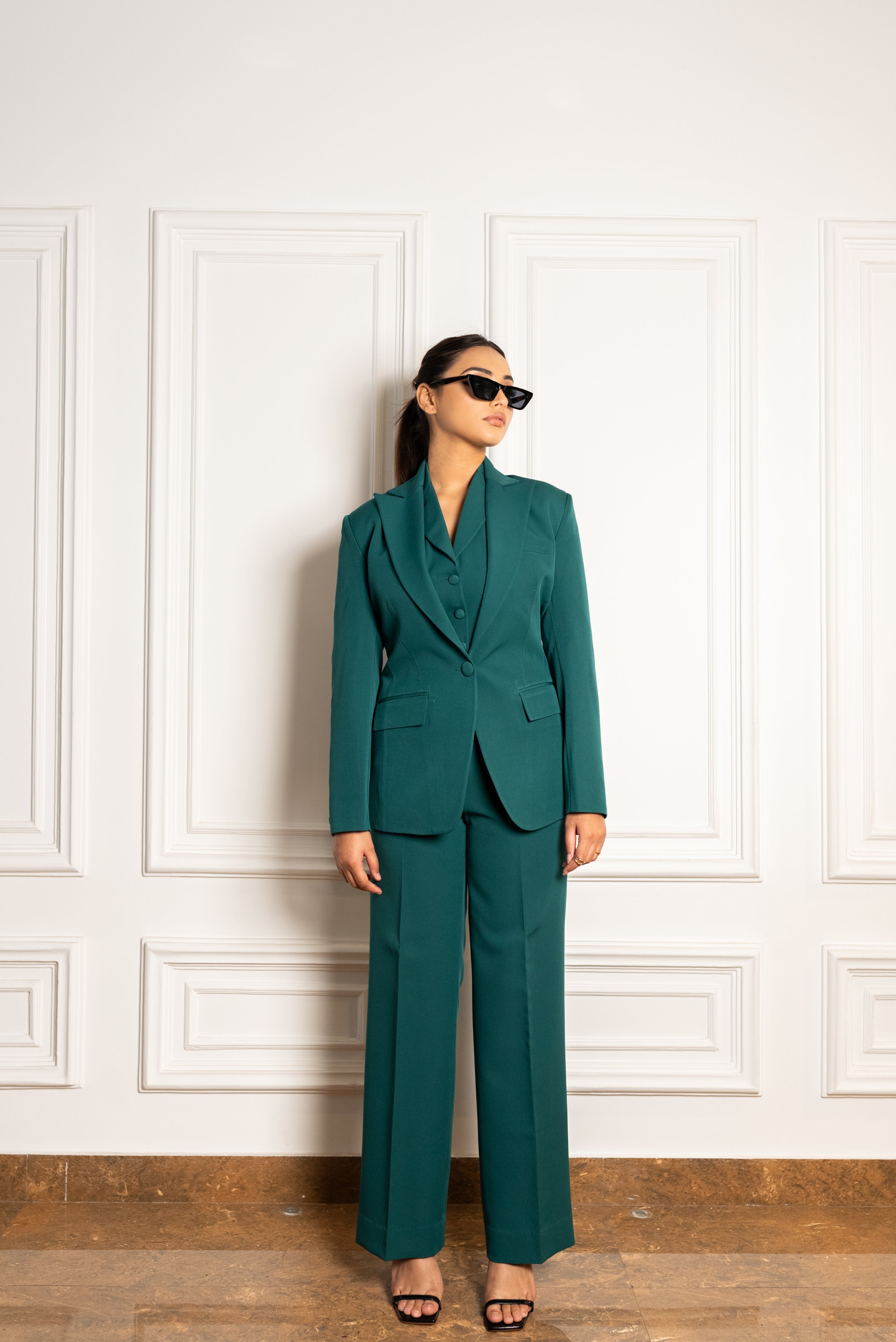 This suit contains 3 pieces: A blazer, a waistcoat top and pants. The blazer with shoulder pads, front flap pockets, lapel collars, quality lining, and precise pastings inside, paired flawlessly with a matching vest. Complete the look with coordinating pants for a professional look.